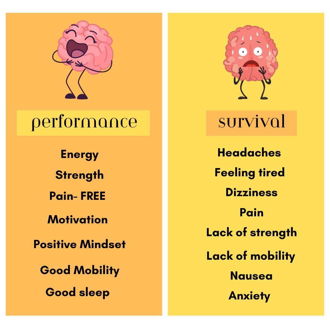 Needless to say, all of this had also affected my movement practice. Lack of balance, lack of motivation , etc. As soon as I started my journey to reducing threat, my movement practice got better… I went from SURVIVAL MODE to PERFORMANCE MODE.